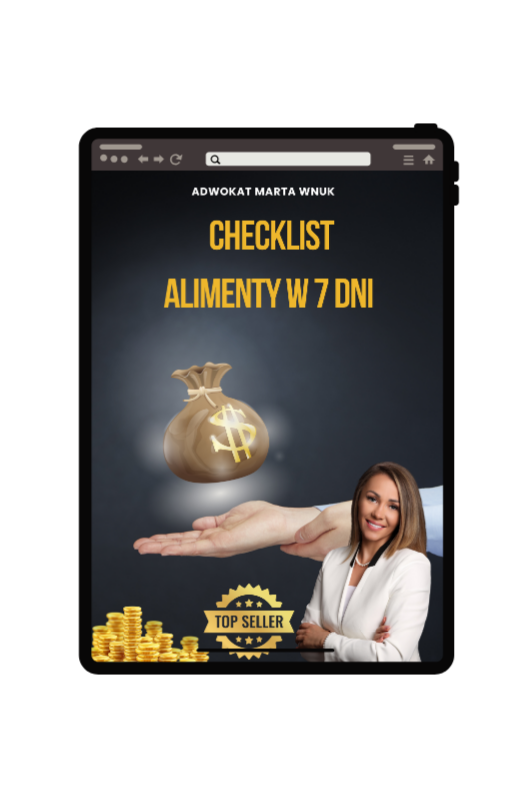 📋 Checklist „Alimenty w 7 dni” – szybka strategia działania, dzięki której nie przegapisz żadnego kluczowego kroku. Krok po kroku przeprowadzisz swoją sprawę w uporządkowany i przemyślany sposób.